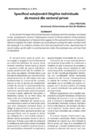 Specificul soluţionării litigiilor individuale de muncă din sectorul privat In the private the legal relationship between employee and the employer are based on the employment contract. Employment contract is the foundation of the existence and further development of relations that appear in the work performance. Employer’s refusal to legalize the labor relations by concluding in writing the labor contract with the employee is in violation of labor laws that are prejudicial to him, depriving him of certain rights, eg the right to social protection when the employee was unit was fired or liquidated.
