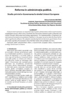 Reforma în administraţia publică. Studiu privind e-Guvernarea la nivelul Uniunii Europene E-Government represents an important step în public administration reform and it involves a digitization process which aims to facilitate the interactions between public authorities and citizens through information technology applications. The implementation of electronic government encountered some problems, therefore în this paper we aim to identify those factors which significantly influence the adoption and development of electronic government, through a study regarding the European Union Member States and candidate countries.