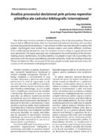 Analiza procesului decizional prin prisma reperelor ştiinţifice ale cadrului bibliografic internaţional One of the most common activities of human beings is that of decision-making. There are easy as well as difficult decisions, there are important and irrelevant decisions, one must face personal and professional decisions. A vast amount of effort has been devoted to explore this subject. Psychologists have studied how decision-makers work under different conditions. From a philosophical perspective, even the existence of such a thing as a good decision has been questioned. The logical approach has contributed to the understanding of the decisionmaking process. Mathematics, including Statistics, has played a major role in providing a formal structure for the process and defining criteria for optimality. Under the heading of Decision Theory, the literature offers an account of the ways people actually make decisions and a discussion on the mechanisms underlying this behavior.