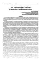The Transnistrian Conflict – the prospects of its resolution În viaţa modernă a Moldovei un rol important îl joacă conflictul politic nesoluţionat dintre guvernul central şi conducerea zonelor de est ale Nistrului. Această situaţie afectează întreaga gamă de probleme cotidiene: modelarea vieţii economice şi politice a ţării, relaţiile internaţionale, relaţiile economice externe etc.