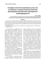 Стандарт качества социальных услуг как инструмент государственной политики The question of quality of granting of social services by enforcement authorities, local government and public organizations to homeless and neglected children in Ukraine is considered. The innovative form of work with street children - outreach-work is investigated. It is defined principal views of services within the limits of outreach-work. Necessity of introduction of the quality standard of services to homeless and neglected children in Ukraine is proved.