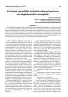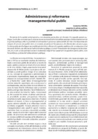 Administrarea şi reformarea managementului public En termes de la société contemporaine, une attention particulière est donnée à la nouvelle gestion publique. Les études montrent que la mise en oeuvre au travail administratif des principes de fonctionnement de la gestion publique, offre la possibilité de rationaliser le processus administratif, de mise à la disposition des citoyens de services de qualité. Dans ce contexte, en analysant les processus de réforme dans plusieurs pays, il a été possible de développer un modèle général de la réforme de la gestion publique. En conséquence, il est demandé de faire une réforme de l’administration publique, à savoir l’introduction de changements fonctionnels, structurés sur des principes visant à moderniser l’objectif non seulement de questions particulières, mais l’ensemble du système de l’administration publique.