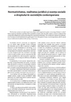 Normativitatea, realitatea juridică şi esenţa socială a dreptului în societăţile contemporane The human society is an alive organism, a logic, well-organised system consisting of elements which have reciprocal relations and links that constitute a whole. Like any ofter system, society is imposed the conduction ofbehavior and functioning of its constitutive elements. The conduction allows the orientation of society and of its elements to a given goal. From this point of view, a social regulation, which would ensure order and discipline in the society, is necessary.