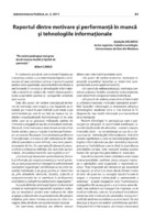 Raportul dintre motivare şi performanţă în muncă şi tehnologiile informaţionale În contextul actual al unei economii bazate pe cunoştinţe, odată cu conştientizarea faptului că resursele umane constituie cel mai important capital pentru orice oganizaţie, raportul dintre motivare şi performanţă în muncă şi tehnologiile informaţionale a devenit un subiect de maxim interes pentru toate autoritătile publice şi companiile orientate spre succes.