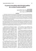 Cu privire la tendinţa administraţiei publice de a evolua în putere publică In the classic constitutional concept, the administration represents the real executive power based on the public power procedures. In this conception, the administration is not the only duty of the Executive, but it is an exclusive one. As an argument of sustaining this idea, it is shown that the Executive, through Government, has a multitude of extra administrative duties, provided in the constitutional relationships with the Parliament or in the international ones. In the meantime, the Administration is the exclusive duty of the Executive, because it could not be exercised by the judicial power, legislative power according to the separation of powers in the state. Contemporary political West European regimes’ observation shows that all these concepts can be found in the institutional practices, proving that the Administration can be tempted to become the center of a distinctive power from the one of the Government. The politicians’ power depends on the length of their political mandate, which is precarious by its nature, depending on the elector’s willing, while a high public function and the civil servants’ positions can be sure of their permanency. Due to this reason, the Administration could stop being a simple function in the existing conditions but it could become a real public administrative power distinct from the executive one.
