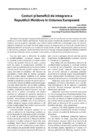 Costuri şi beneficii de integrare a Republicii Moldova în Uniunea Europeană Participarea la o grupare integraţionistă determină o serie de transformări, de mai mică sau mai mare amploare, la nivelul statelor participante. Amploarea acestor transformări variază în funcţie de stadiul de integrare atins de gruparea regională şi pot îmbrăca forma redefinirilor instituţionale şi/sau de conţinut/ adoptare al politicilor sectoriale. Dat fiind stadiul avansat de integrare atins la nivelul UE, transformările în adoptarea politicilor economice sunt evidente la nivelul statele membre. Adoptarea unor politici economice în care factorul „european” devine dominant înseamnă, în esenţă, reducerea gradelor de libertate, justificată de urmărirea interesului comun „european”, în formularea şi implementarea politicilor economice.