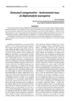 Sistemul congreselor - instrument nou al diplomaţiei europene The Congress of Vienna has contributed to the establishment of a new international relations system, developed in order to ensure peace during a certain time framework. European powers - Austria, Britain, Prussia and Russia, despite their own national differences, had tried to work together on behalf of establishing peace. It was in this period that the foundations of modern diplomacy had been set, and a new model of international relations had been established - a model which has been preserved until now. According to most experts, the last stage of evolution of European diplomacy, characterized by a variety of congresses and conferences, has been the benchmark for the establishment of the early modern diplomacy.