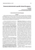 Sistemul administrativ specific Uniunii Europene Beeing a reality that appeared in the last half of the 20th century, The European Union is a result of efforts of bringing peace that can be dated in the 18th century but which were fulfilled only after the Second Warld War. The European Union as it is known today is a multinutional structure that developed in the last fifty years and which is ruled through its own administrative institutions. All the institutions of The European Union allow it to fulfill its major objectives and make it preparead to impose its values and to be opened to other European countries that are willing to join the European Union.