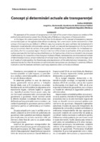 Concept şi determinări actuale ale transparenţei The approach of the concept of transparency in the light of the current vision imposes an analysis of the political and administrative system from the Republic of Moldova in the process of democratization. In this Paper, the author points to the fact that the finalization of the concept of transparency became an essential aspect on the agenda of the efficient leadership. The current visions on the characteristics of the concept of transparency are defined in different ways, but comprise the same sub layer: the instrument of a democratic model of public administration activity. As well, we conclude that transparence is the key element not just to control, check the actions of the public administration, but as well enables the institutional responsibility, that has as positive impact- the rise in the trust of the citizens to authorities. At the same time, the author concludes that the high number of definitions or the high number of elements included in the structure of definitions by the researchers of the European Institute of Public Administration, the International Institute of Administrative Science, similar institutions of national states (Romania, Moldova) is due to the large variety of modes of understanding (by theoreticians and practitioners) of the administrative transparency. This is explained via the fact that the activities on administrative transparence are developed in extremely different institutions and the methods and forms used imply objectives which are hardly conciliated.