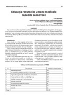 Educaţia resurselor umane medicale capabile să inoveze Our study proposes programs for the medical human resources education, the creation of an „Innovative Medical organization” as a motivation system, for the integration of the collective, to form attitudes and behavior, for creativity, efficiency, efficacy motivation and formation of practical dexterities, at the level of medical organizations.