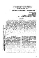 Completarea automatizată a suplimentelor la diplomele de licenţă şi de master Since the RM joined to the Bologna process in 2005, higher education institutions have been handing in licentiate and master diploma supplements of European type to their graduates. Actually, there are no technical problems with completely printed diplomas, although some institutions, particularly those with a weaker ICT infrastructure, are filling in diploma supplements "manually " that is inefficiently and takes unreasonably much time, especially in case of their repeated modifications. There are at least two soft solutions for diploma supplemeats completion automation: I) specialized databases; 2) the two most popular and relatively simple MS Office applications - Word (Mail Merge Toolbar) and Excel (served as a Data Source). The first solution is professional, but it requires many resources; the second one is for advanced users, but it is easier, faster, more flexible, and much cheaper. Therefore, the first solution is more applicable for larger, ICT-advanced institutions, the second one - for those with a smaller budget.