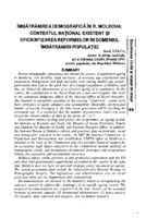 Îmbătrânirea demografică în Republica Moldova: contextul naţional existent şi eficientizarea reformelor în domeniul îmbătrânirii populaţiei Several demographic phenomena are behind the process of population ageing in Moldova: low fertility, high mortality of working age population and emigration. Emigration and high mortality rate among middle-age people, particularly men lead to the quick loss of a younger population of Moldova and thus are behind the phenomenon of accelerated ageing of its population. In this context, the contributions to the Social Fund are scarce and irregular, that leads to the continuous budgetary deficit of the National Office of Social Insurance. The situation is potentially unsettled as the existing "chimerical" system lacks basic principles of equity, adequacy and suslainability. Meanwhile, an increased number of persons belonging to the baby boom generation will be reaching the retirement age.