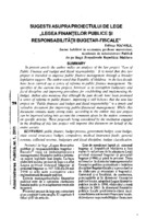 Sugestii asupra proiectului de lege „Legea finanţelor publice şi responsabilităţii bugetar-fiscale" In present article the author makes an analysis of the law project "Law of Public Finance and budget and fiscal responsibility." It is noted that this law project is intended to improve public finance management through a broader legislative support. The author noted that Republic of Moldova, in the last decade have been carried out a series of reforms in public finance management. The specifics of the current law project, however, is to strengthen budgetary and fiscal discipline and improving procedures for establishing and implementing the budget. Author also mentions that although the past decade have been promoted a series of reforms in public finance, improving it still believes that the new law project on "Public finances and budget and fiscal responsibility" is a timely and valuable document for improving public financial management. While this document contains many strong sides, according to the author, this law project can be improved taking into account the comments given by the author, comments on specific articles. These proposals being considered by the institution engaged in the drafting of this law project will improve this document on behalf of the entire society.