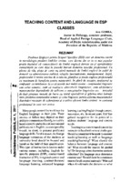 Teaching content and language in ESP classes Predarea Englezei pentru Scopuri Specifice (ESS) este un domeniu curent in metodologia predării limbilor străine, care devine din ce in ce mai popular grafie faptului că cunoscătorii de limbă engleză doresc sa-şi aprofundeze cunoştinţele pe care deja le posedă într-un domeniu specific profesional. Cu părere de rău, piaţa de carte nu oferă manuale de limbă engleză în astfel de domenii ca administrarea publică, relaţiile internaţionale, managementul. Astfel, profesorului îi revine sarcina de a selecta, planifica şi preda engleza profesională cu maximum de beneficiu pentru masteranzi. In afară de aceasta, profesorul se confruntă cu întrebarea: la ce să acorde mai multă atenţie - conţinutului lingvistic sau celui tematic; cum să realizeze obiectivele lingvistice; cum să formeze masteranzilor deprinderile de utilizare a cunoştinţelor lingvistice etc. Articolul de faţă propune metode de lucru cu textul specializat şi găsirea unei balanţe între predarea conţinutului tematic şi celui lingvistic pentru a forma masteranzilor deprinderi necesare de a funcţiona şi a utiliza eficient limba străină in contextul profesional în care vor activa.