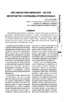 Diplomaţia parlamentară - factor important în cooperarea internaţională Strengthening parliamentary diplomacy and the importance of national parliaments and European assemblies is a gift of the globalization era. Parliamentary diplomacy has become an important tool in this phenomenon, which has enabled communication global common values: democracy, human rights and the rule of law, respect for minority rights and cultural diversity, which are solid foundations of contemporary society