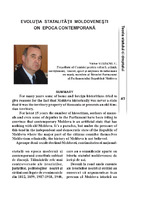 Evoluţia statalităţii moldoveneşti în epoca contemporană For many years some of home and foreign historitians tried to give reasons for the fact that Moldova historically was never a state that it was the territory property of Romania or presents an old Russian territory. For latest 15 years the number of historitian, authors of manuals and even some of deputies in the Parliament have been triing to convince that contemporary Moldova is an artificial state that has nothing with old Moldova. It’s a paradox, but under the pressure of this tend in the independent and democratic state of the Republic of Moldova where the major part of the citizens consider themselves Moldavians ethnically, the history of Moldova is not believed.