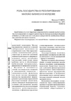 Роль государства в регулировании малого бизнеса в Молдове Small business is a very important component in the economic market system. The Government have to support and develop the Entrepreneurship in Republic of Moldova. It will create new work places and provide the mobilization of financial, material and nature recourses.