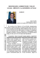 Modernizarea administraţiei publice locale - imperativ al guvernării actuale The creation of the Ministery of Local Public Administration presents a controversial process and has touched more issues of all levels; from the local authorities till the Parliament of the state; it was created when the necessity of the ministry was urgent. It’s significant that it was created on the 15th anniversary of independence of the Republic of Moldova. Statehood, independence are already realized things, but they need to be developed and consolidated.