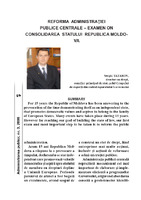 Reforma administraţiei publice centrale – examen în consolidarea statului Republica Moldova For 15 years the Republic of Moldova has been answering to the provocation of the time demonstrating itself as an independent state, that promotes democratic values and aspires to belong to the family of European States. Many events have taken place during 15 years. However for reaching our goal of building the state of law, our first exam and most important step to be taken is to reform the public administration.