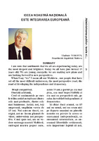Ideea noastră naţională este Integrarea Europeană I am sure that sentiments that we all are experiencing today, are the most deepest and brightest. Today we all have just turned 15 years old. We are young, energetic; we are making new plans and are looking forward to new perspectives. When I say “we” I mean all our Moldova , our people that have set off the most difficult unforeseen, the most perspective road, the road of developing the independence and democracy.