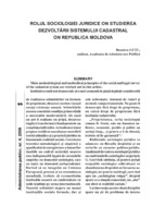 Rolul sociologiei juridice în studierea dezvoltării sistemului cadastru Main methodological and methodical princeples of the social and legal survey of the cadastral system are worked aut in this article.