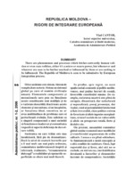 Republica Moldova - rigori de integrare europeană There are phenomenon and processes which fetches outwardly human volition or even state volition, either it’s a micro or macro power, but whomever and whatever are seen to be further marked or influenced by them or are seeking to be influenced. The Republic of Moldova is seen to be submissive by European Integration process.