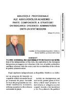 Abilităţile profesionale ale absolvenţilor Academiei - parte componentă a strategiei în ridicarea eficienţei administrării Republic of Moldova, the constituting of the civil society consolidation of the independence of the state, the aspiration to the European integration presuppose reevaluation of the rate of public authorities and their relations with the society and the acceleration of the reform in public administration.