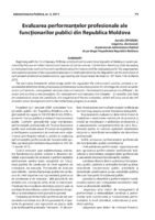 Evaluarea performanţelor profesionale ale funcţionarilor publici din Republica Moldova Beginning with the 1st of January 2009 the activity of civil servants from Republic of Moldova is institutionalized by the Law on Public Function and Statute of Civil Servant no. 158-XVI from 4th of July 2008. According to mentioned Law, each civil servant’s professional performances shall be evaluated yearly. The organization and evolution process of the assessment procedure is institutionalized by the Regulation on the evaluation of civil servant’s professional performances, approved by the Government decision no. 201 from 11th of March 2010. The normative framework, which brings under the regulation the civil servant’s activity, contains a circumstantial definition of the professional performances evaluation process for all categories of civil servants: senior civil servants, management and executive civil servants. The evaluation procedures are different – for senior civil servants is one procedure, for management and executive civil servants – it’s another, but both are conceived to create the conditions of a impartial and honest evaluation, which will carry on to the civil servant’s career development and to the institutional progress as a whole.