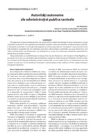 Autorităţi autonome ale administraţiei publice centrale The objectives of government and the ensurance of the smooth functioning of state institutions is vested with public authorities. The traditional classification of public authorities based on territorial criterion identifies the public authorities and the general competence of special jurisdiction. In addition to specialized central administrative authorities like the ministries and other administrative authorities set up by Parliament and which activate within the Government we distinguish an entity of autonomous authorities responsible for specific areas of public interest. These authorities are established on the basis of law by the Parliament, the President of the Republic, or the Government but are not within their jurisdiction (except the State Guard and Protection Service under the President of the Republic of Moldova) and complete their mission under the law. In what follows, we will conduct an overview of the mentioned institutions and provided a brief emphasis of their status, functions and governing bodies.