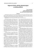 Raportul dintre ştiinţa administraţiei şi știinţa politică Relations between politics and administration is a matter for discussion between theoreticians and practitioners of public administration in ancient times till nowadays. The importance of this research topic has explanation in that form and content of these relations manifested de jure and de facto influence on the administration process and therefore the development of society as a whole.