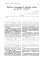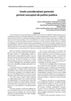 Unele consideraţiuni generale privind conceptul de politici publice Cet article traite le concept de politiques publiques tout en partant des définitions déjà existantes dans la littérature de spécialité. Les politiques publiques ont une histoire relativement courte, mais il y a de différentes perspectives de recherche du concept des politiques publiques. Plusieurs auteurs proposent et soulignent les aspects clefs de l’action publique, d’où la complexité de ce concept. En même temps, l’approche théorique et pratique du concept des politiques publiques permettrait aux fonctionnaires de l’administration publique de comprendre la complexité du processus de gouvernement et de trouver les solutions adéquates pour les problèmes publics. Dans ce contexte, la compréhension du concept des politiques publiques devient actuelle afin de moderniser et d’améliorer les pratiques démocratiques dans la République de Moldova, qui se trouve actuellement face aux provocations pour le processus de gouvernement démocratiques.