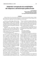 Delimitări conceptuale ale modalităţilor de înfăptuire a administraţei publice locale Relations between the central and local administration are characterized by different degrees of dependence on the center, therefore either by the centralization, or by deconcentration or by decentralization, principles underlying the organization and functioning of public administration.