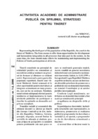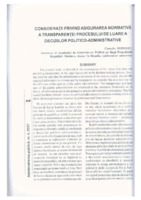 Consideraţii privind asigurarea normativă a transparenţei procesului de luare a deciziilor politico-administrative The present study is devoted to the examination of the issues that deal with] providing transparence to the legal framework in the decision-making process. Starting from the idea that the administrative structures of the modem society should o required information to citizens and be transparent, we consider this as a sure wax f< the efficiency of the activity of the public administration. The transparent and openness of the public administration arc stipulated in the normative framework on the liberty of information and in the normative acts on administrative procedures This fact: should facilitate citizens access to political-administrative decision-making and to exclude the monopolization of power by politicians and functionaries.
