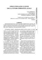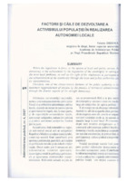 Factorii și căile de dezvoltare a activismului populaţiei în realizarea autonomiei locale Within the legislation in force, in the system of local and public service, the democracy is the achievement by the population of the sovereignty in solving the most local problems, as M el/ as the right of the inhabitants to participate at the administration of the community through the local and public authorities and its representatives. Therefore, one of the characteristic features of the public authority is the maximum rapprochement of citizens by the process of territorial administration through the diverse aspects of the straight democracy.