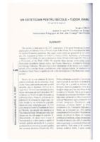 Un estetician pentru secole - Tudor Vianu This article is dedicated to the 110"' anniversary of the great Romanian scientist, philosopher and literary critic of Jewish origin Tudor Vianu. He is considered the father of modem Romanian aesthetics. His major works which arc presented in our article arc: The Judgment of Values in Schiller 's Poetics (1923). Aesthetics, a work in two volumes (1934-1936). The Art of Romanian Prose Writers (1941) and The Theses of a Philosophy of the Work (1946) We describe these famous works using quotes from some remarkable literary critics like Nicolae Manolescu. Constantin Ciopraga and George Calinescu. We give also a short description of the literary and scientific activity of his son Ion Vianu, a well-known writer and psychiatrist. In conclusion we emphasize Tudor Vianu as significant role in the development of the Romanian literary science.