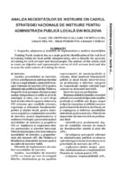 Analiza necesităţilor de instruire în cadrul Strategiei Naţionale de Instruire pentru administraţia publică locală din Moldova Training Needs Analysis has as a main goal the identification of the real level of training within the local public administration, also to identify the necessity of training for civil servants and elected people. The authors of this article tried to create an objective and representative survey of civil servants level and also to asses the main sources of training for them.
