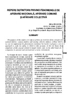 Repere definitorii privind fenomenele de apărare naţională, apărare comună şi apărare colectivă The purpose of this study is noi only lo achieve an overview of the concepts of national defense, common defense and existing collective defense, without which we can not understand the phenomenon examined, but mainly to propose a new approach to study the safety, in which to take account, on the one hand, the complexity of this concept related to human nature, and, on the other hand, de velopments in national and international security environment.