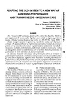 Adapting the old system to a new way of assessing performance and training needs - moldavian case Din 1 ianuarie 2009 activitatea funcţionarilor publici din Republica Moldova este reglementată de un nou cadru legislativ, care include şi Legea cu privire la funcţia publică şi statutul funcţionarului public (nr. 158-XVI din 4 iulie 2008). Pentru a asigura punerea în aplicare a prevederilor noului cadru legislativ, urmează a fi ajustate/elaborate şi implementate mai multe proceduri de personal, printre care şi procedura de evaluare a performanţelor profesionale individuale. Necesitatea evaluării performanţelor profesionale rezidă în crearea unui cadru de management eficient al performanţei, care ar permite obţinerea progresului şi performanţei la nivel individual, de grup şi organizaţie. In articolul respectiv sînt expuse idei privind procedura de evaluare a performanţelor individuale, corelarea acestei proceduri cu evaluarea performanţei pe verticală în organizaţie, legătura dintre rezultatele evaluării performanţelor profesionale cu alte proceduri de personal, precum şi propuneri referitor la unele acţiuni necesare a fi întreprinse în viitor pentru asigurarea succesului în implementarea procedurii de evaluare a performanţe/or profesionale individuale.