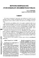 Motivarea nonfinanciară a funcţionarilor din administraţia publică The modern management s approaches and tendencies are based on a key principle related to design and implementation of a new employee motivation and retention system in order to achieve the objectives at the highest level possible. The motivation and stimulation of the civil servants is regulated by the Law on Public Function and Statute of Civil Servant No. 158-XVI dated 4 July 2008. In this context, based on Art.40, the civil servant is motivated based on appreciated performance and spirit of initiative, as well by receiving diplomas for specific results the civil servant has demonstrated great performance at the workplace, merits state, he can be decorated with state distinctions.