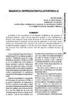 Mandatul reprezentantului poporului According to the Constitution of the Republic of Moldova, the mandate of Parliament members is free, and the imperative mandate is void. Parliamentary Practice and enhanced voting of the decisions by the parliamentary factions, established based on political criteria and the adherence to the party, shows defiance of constitutional rule, and places the status of a Parliament Member to an inferior position compared to the one of a party member. Thus, the free man date principle turns itself into a fiction, while the imperative mandate becomes a reality.
