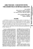 Limba Franceza - o necesitate pentru funcţionarii publici din Republica Moldova Actuellement, les activites des fonctionnaires publics de la Republique de Moldova ont leurs fondements sur la communication dans une langue etrangere. D'ici la necessite imposee aux elus et agents publics de l'etat de connaitre effectivement une langue d"usage international. Vu la perspective de mondialisation des rapports interculturels et sociaux, cette realite devient inevitable.