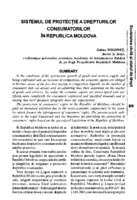 Sistemul de protecţie a drepturilor consumatorilor în Republica Moldova In the conditions of the spectacular growth of goods and services supply and being confronted with an increase of competition, the economic agents are obliged to become aware of the fact that staying in competition depends on the number of . "O consumers they cat attract and on admitting thus their autonomy on the market of goods and services. So. today the economic agents are preoccupied with satisfying more completely the consumers' expressed and specified demands and at aiming that their products integrally meet the expectations. The protection of consumers' rights in the Republic of Moldova should be paid an increased attention due to the socio-economic conjuncture in the country which favours the infringement of consumers' rights. The present article indicates to the legal framework and the measures for providing the protection of consumers' rights based on the specialized legislation of the Republic of Moldova.