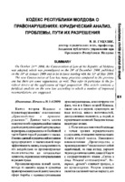 Кодекс Республики Молдова о правонарушениях: юридический анализ, проблемы, пути их разрешения On October 24, 2008, the Contravention of Law of the Republic of Moldova Q. was adopted, which was promulgated on the 29'' of December, 2008, published О on the 16* of January 2009 and to be in force starling with the 31 ' of May 2009. а The new Contravention of Law has many priorities compared to the previons one but there are some vaguenesses, as well. They refer in particular to the ju ridical device of the application of legal proposition. This article contains a juridical analysis on the new law according to which a number of improved recomandations are suggested.