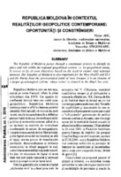 Republica Moldova în contextul realităţilor geopolitice contemporane: oportunităţi şl constrîngeri The Republic of Moldova passes through a continuous process to identify its place and role within the regional geopolitical context, i.e. its geopolitical status. It strives to fix its own objectives based on the need to ensure vital national interests. The Republic of Moldova is also important for the West (NATO and EU) and for Russia from the geostrategicat point of view, because it is an element of a larger geostrategical scheme, whose center is situated in the Black Sea area