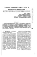 Cu privire la metodologia de calcul al mandatelor parlamentare şl interpretarea noţiunilor de majoritate The mathematical aspects of the methods of distributing the parliamentary mandates and the concept of the parliamentary majority are analyzed in the prevent article. It is proposed to distribute the parliamentary mandates based on the condition that the standard deviation from the principle of equality of voters is the minimum. The efficiency of the proposed method clearly results from the analyzed numerical calculations