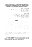 La décentralisation et le développement régional - priorités pour la modernisation de l’administration publique locale dans la République de Moldavie Republic of Moldova is in a process of change in which all the aspects economic, social, political, civic experienced a new dynamic in trying to adapt to present conditions. Administrative decentralization and local autonomy is one of the priorities of the Moldovan government. The decentralization process comes to giving local authorities powers and duties in three areas: political, administrative, organizational and financial. These powers need to be exercised in conditions of autonomy, involving freedom of decision making and the exercise of powers with respecting legality, provisions of national, regional and sectoral policies.