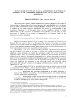 Human resources policy in local government in Republic of Moldova in the context of implementing the EU Association Agreement This article reflects aspects of public administration reform in Moldova in the context of implementing the European Union Association Agreement. It is underlined the role of the human factor in public administration reforms. Are highlighted the problems facing local government in Moldova in the human resources management. The process of implementation of the Association Agreement to the European Union involves significant reforms in public administration. In this connection are identified current priorities of staff policy in local government in Moldova in the context of implementing the European Union In this connectionAssociation Agreement.