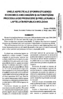 Unele aspecte ale sporirii eficienței economice a mecanizării şi automatizării procesului de producere şi prelucrare a laptelui în Republica Moldova Human food problem becomes more acute. Milk production in the years 2000-2009 has decreased by 25% for rural areas this work is not convenient. Prices in cities have increased considerably. To improve the situation is required intensive use of mechanization and automation of production and processing of milk. This will increase productivity, will decrease prime cost and marketing prices will lower.