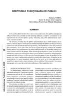 Drepturile funcţionarilor publici In the public adminisiralion Ihcrc arc no universal truths. The public cotemporary office worker must consider all the existing methods in order to correspond to the requirements of a modern public agency. Generally, the public administration repre sents a circular system. The diversity of tasks that the public administration has to fulfil requires an ex tremely various range of conscriptions realized through the public services, as well as a personnel with diverse professional grounding. The satisfaction of the daily needs of . the community, of the man who lives in an organized group, remains the essential finality and the only justification of the public administration, so diversified, mainly in its i conscriptions towards the people. From the sociological point of view, the public ad ministration represents nothing else than a sum of human communities whom organize certain activities in favour of other people. From this point of view, the problem of the people who work in administra lions gels a considerable importance. As perfect as the organization of a social organism would be and as good as the laws and decisions would be, it remains just a simple scheme, without viability, if there wouldn't be competent people, active and devoted in the realization of the established aim.