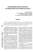 Programarea neurolingvistică în comunicarea funcţionarilor publici The civil servants, participants in various seminars, are interested in tech niques of neurolinguistic programming. This has served as an impulse to write the present article. I tried to elucidate briefly the history of NLP and to describe some techniques of influence through neurolinguistic programming.